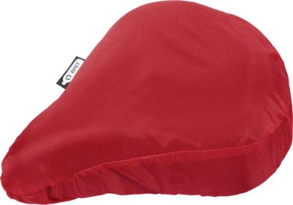 Reusable and lightweight bicycle saddle cover made of recycled PET, with an elastic band to fit on most bicycle saddles. Recycled PET Plastic.